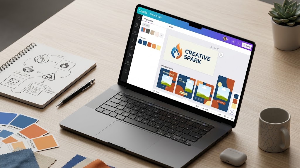 Create pro graphics for social, logos and promotions with AI, no experience required. Practical guide to free tools such as Canva, Looka and CapCut for restaurants and small businesses.